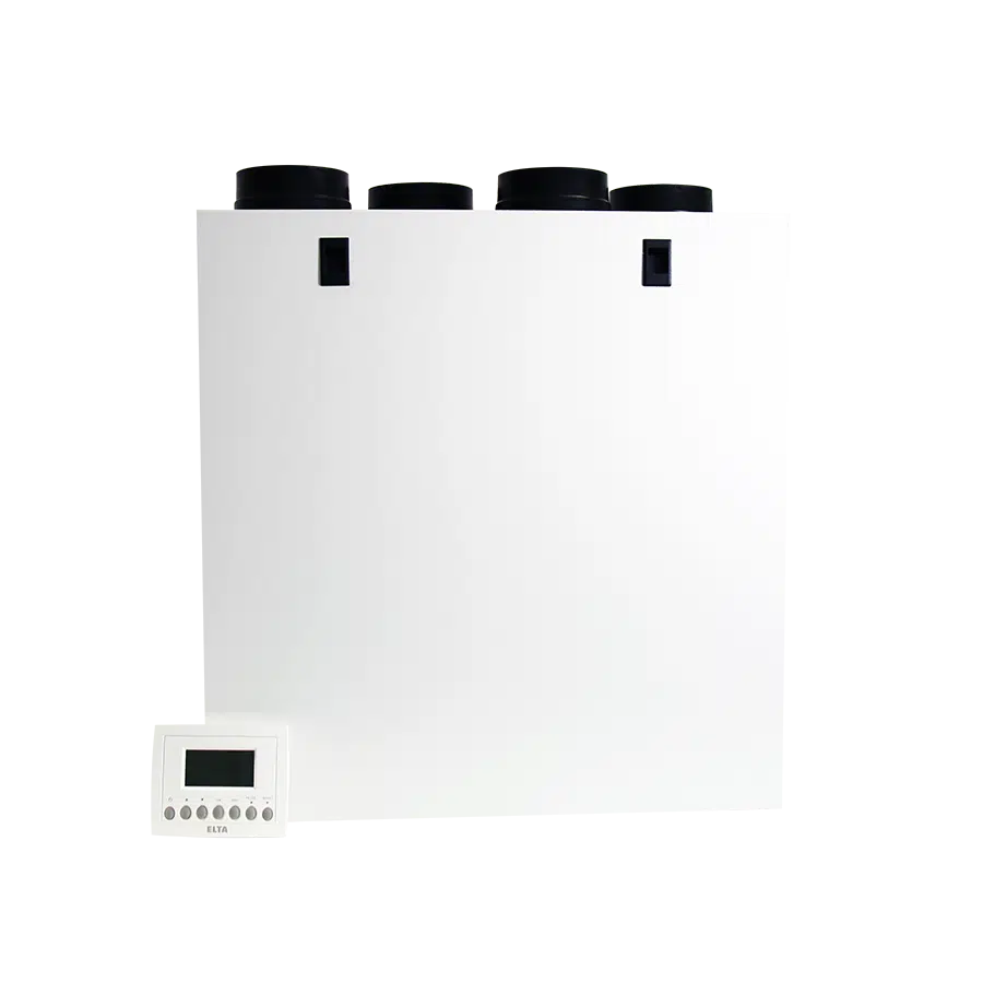 Whole-house heat recovery unit, suitable for vertical installation. Can be installed in a cupboard or narrow spaces thanks to its compact size.