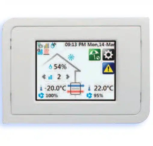 Experience a new level of control and comfort with our state-of-the-art LCD Touch Screen. Designed for effortless operation and real-time monitoring, this advanced interface puts the power of optimal indoor air quality directly in your hands. Navigate a suite of intelligent functions, receive timely notifications, and personalise your system’s performance with a simple tap.